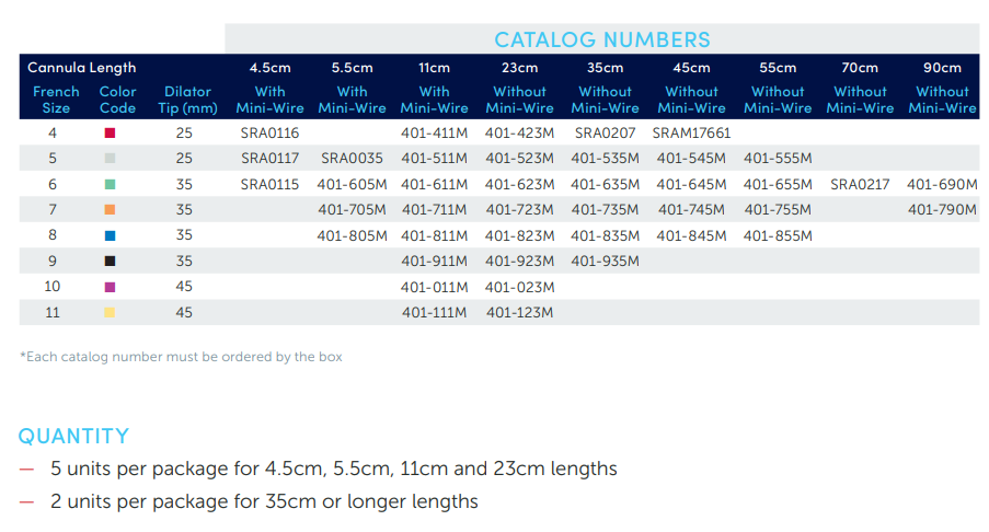 - The manicured tip and dilator design offer tapered transitions on the sheath and dilator for atraumatic vessel entry and improved patient comfort.