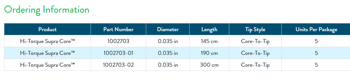 - Abbott 1002703-01 Hi-Torque Supra Core™ Peripheral Guide Wire 0.035" X 190 cm, core to tip. Box of 05