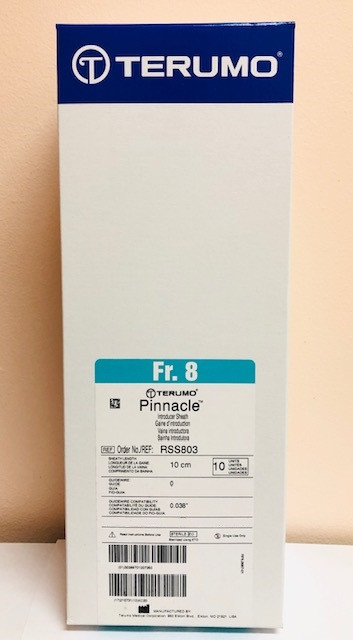 - Terumo RSS803 PINNACLE Introducer Sheath Peripheral Applications 8Fr., 10cm x 0.035". Box of 10